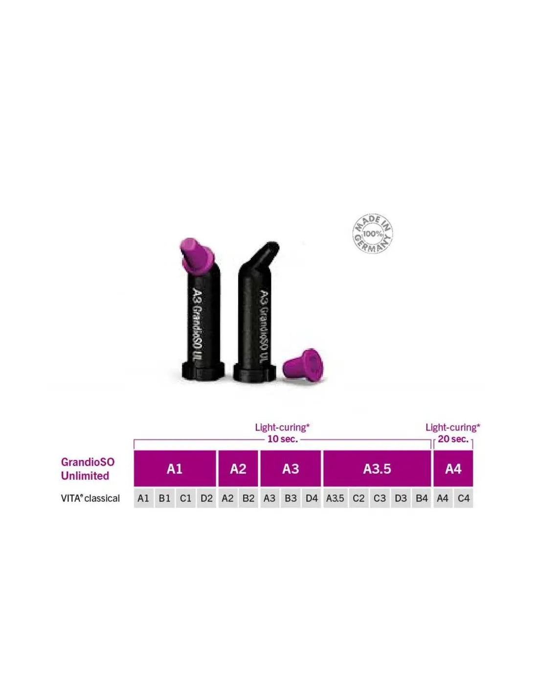 Además, GrandioSO Unlimited ofrece un color simplificado gracias a que puede obtener los 16 colores de VITA classical con solo cinco agrupaciones de tonos (Cluster-Shades). Simplificando la práctica diaria.