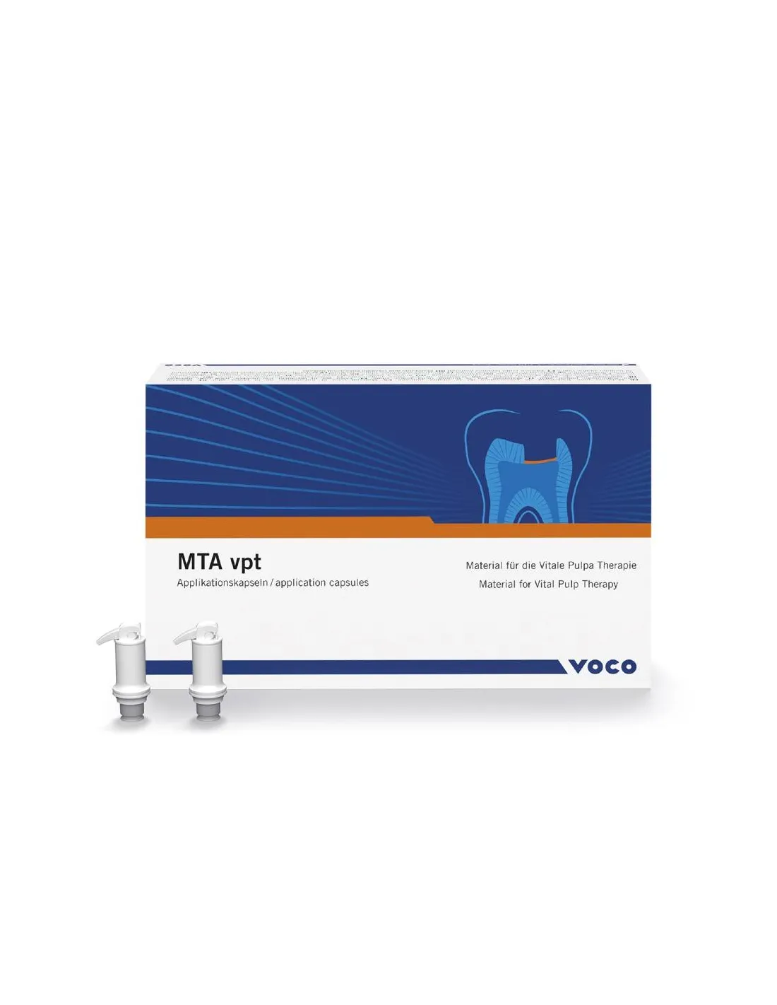 MTA vpt está especialmente pensado para el tratamiento de la pulpa coronaria y se puede emplear óptimamente en el marco del tratamiento de la pulpa vital (VPT) en lesiones cariosas profundas o traumatismos.