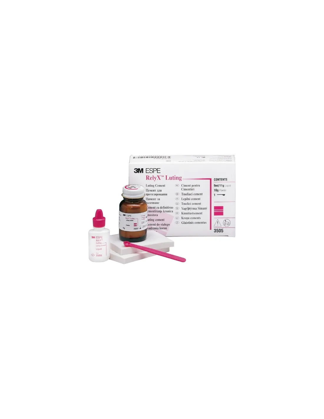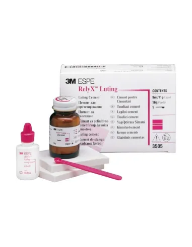 Relyx Luting de 3M es un cemento definitivo (polvo+líquido) a base de ionómero de vidrio modificado con resina, que responde a las necesidades diarias para cementaciones rutinarias de metal y metal-porcelana.