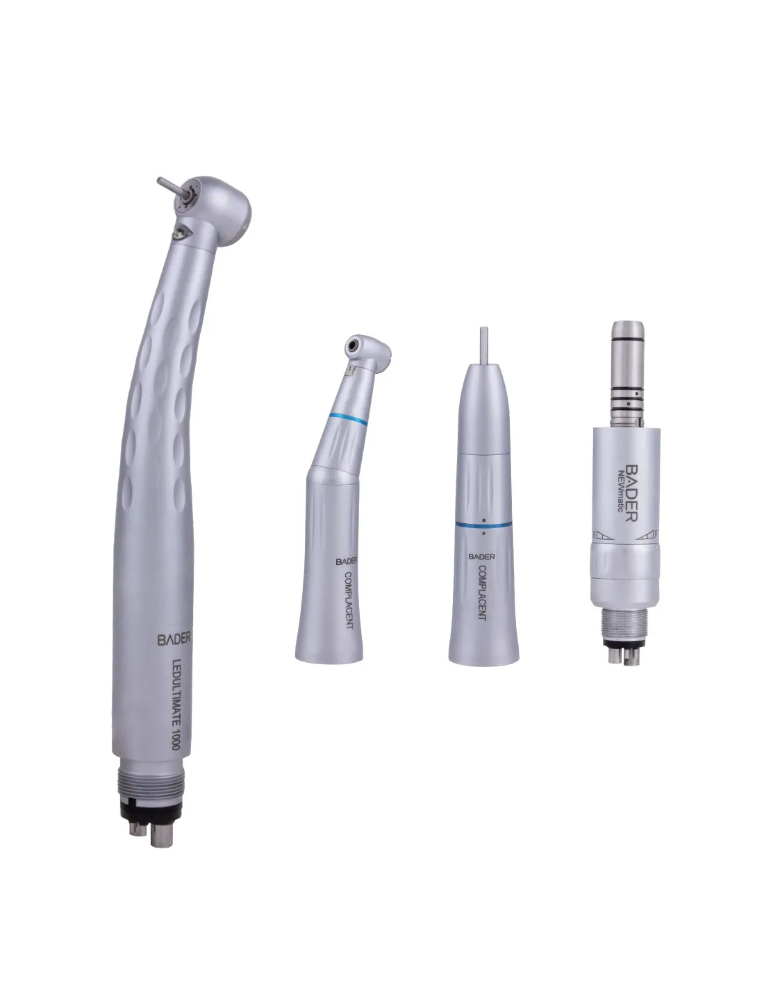 - Turbina LED Ultimate 1000: spray cuádruple. Rodamientos cerámicos. 300.000 rpm. Conexión Midwest 4. Con generador de luz LED independiente, 32000 lux. Nivel sonoro +- 60dB.