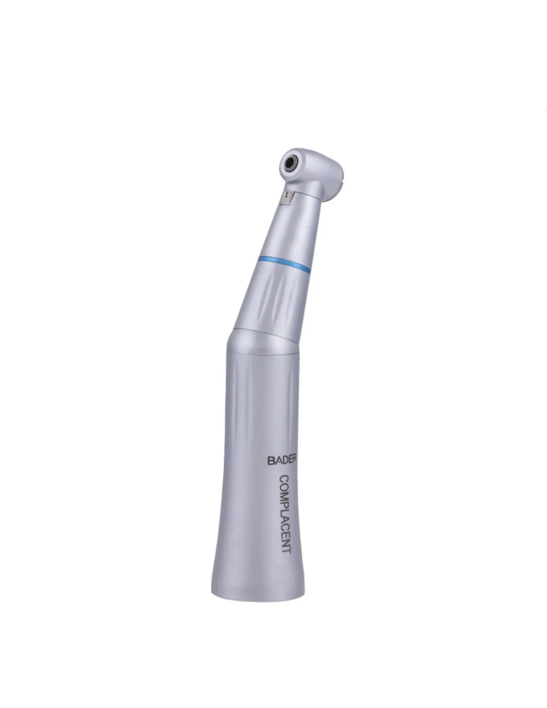 - Contra-ángulo COMPLACENT: Irrigación interna. 20.000 - 40.000 rpm, transmisión 1:1. Rodamientos blindados y cerámicos. Cambio de fresa por botón. Cabezal extraible compatible con KAVO®. Sin luz. Nivel sonoro +- 61dB.