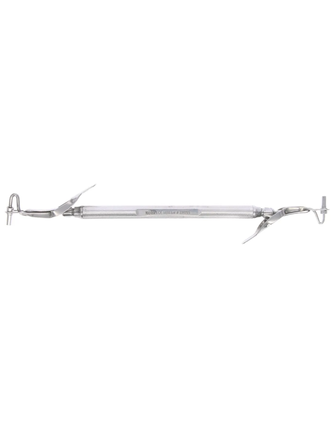 El porta amalgama doble de Masters es un instrumento destinado al transporte de la amalgama desde el mortero hasta la pieza dentaria.