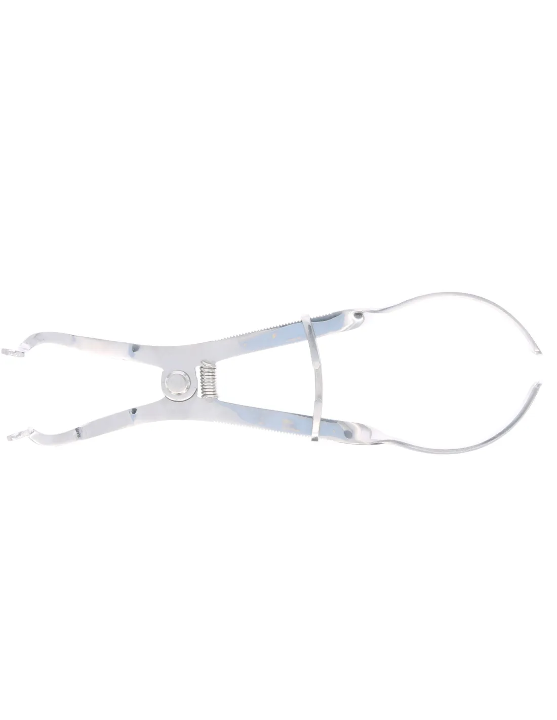 La Pinza Porta Clamps de Masters es un alicate largo con un resorte y una traba. Permiten fijar el clamp o grapa en el diente manteniéndolo abierto bajo tensión.