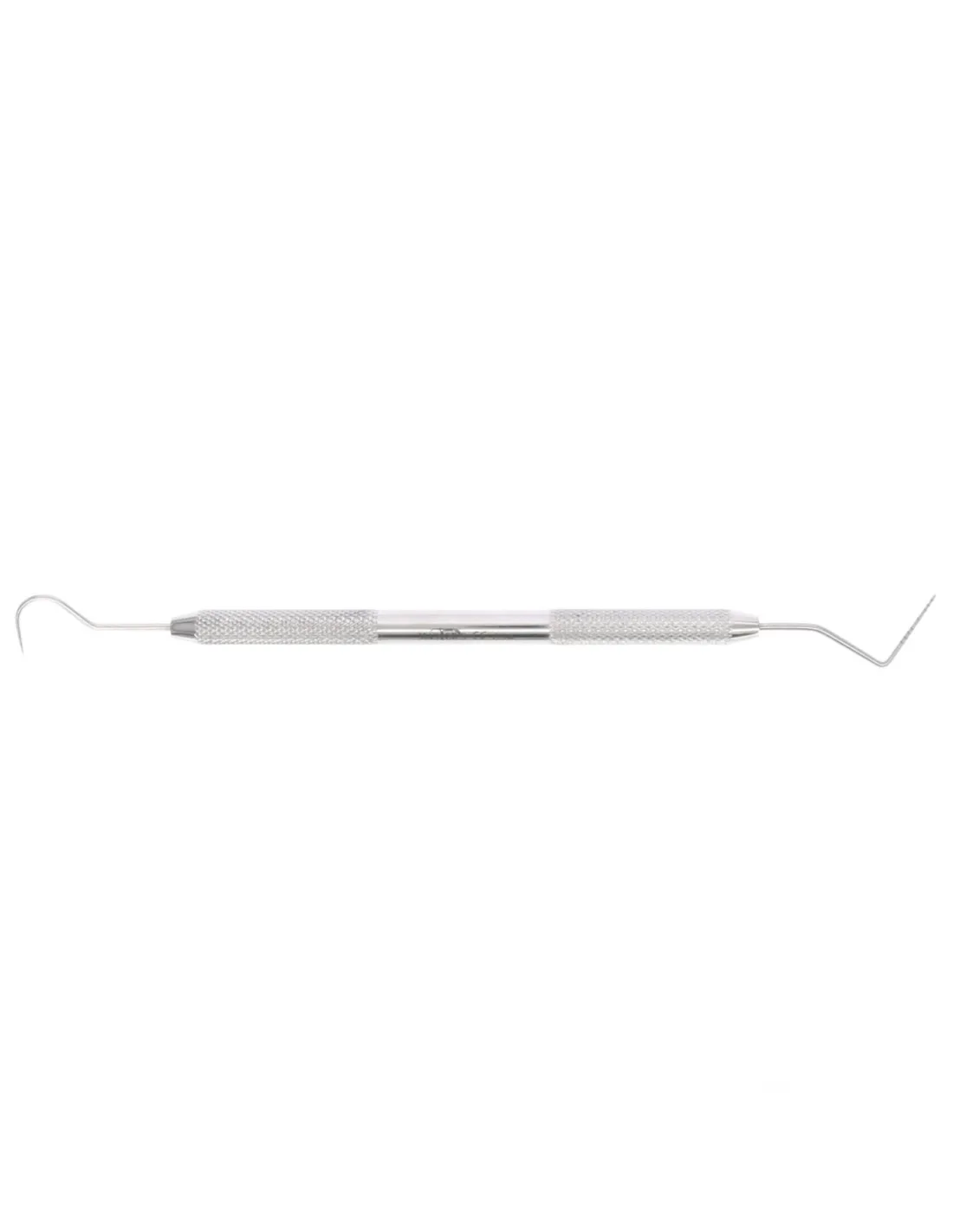 Instrumento doble de exploración Williams de Masters, en uno de los extremos es una sonda periodontal calibrada mientras el otro extremo es un explorador redondo.