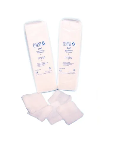 Gasas de tejido no tejido con 4 pliegues, 30gr/m2 y un tamaño de 5x5cm.
