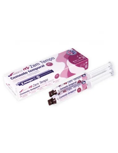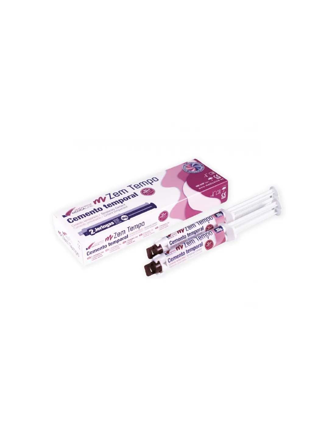 Cemento Provisional m-Zem Tempo de Medicaline en base a óxido de zinc y sin eugenol, indicado para restauraciones tenga que ser retiradas como cementaciones temporales de coronas, puentes, inlays y onlays, restauraciones provisionales o definitivas y cementación temporal de splints.
