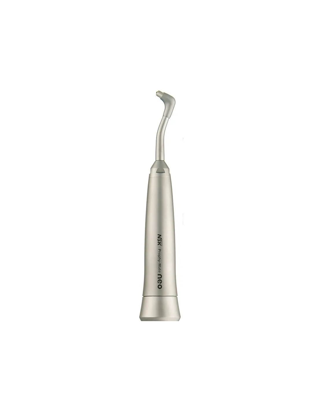 La pieza de mano Prophy-Mate Neo de NSK para el aeropulidor del mismo nombre, posee un diseño ligero, compacto y de peso equilibrado que facilita su uso y previene el cansancio.