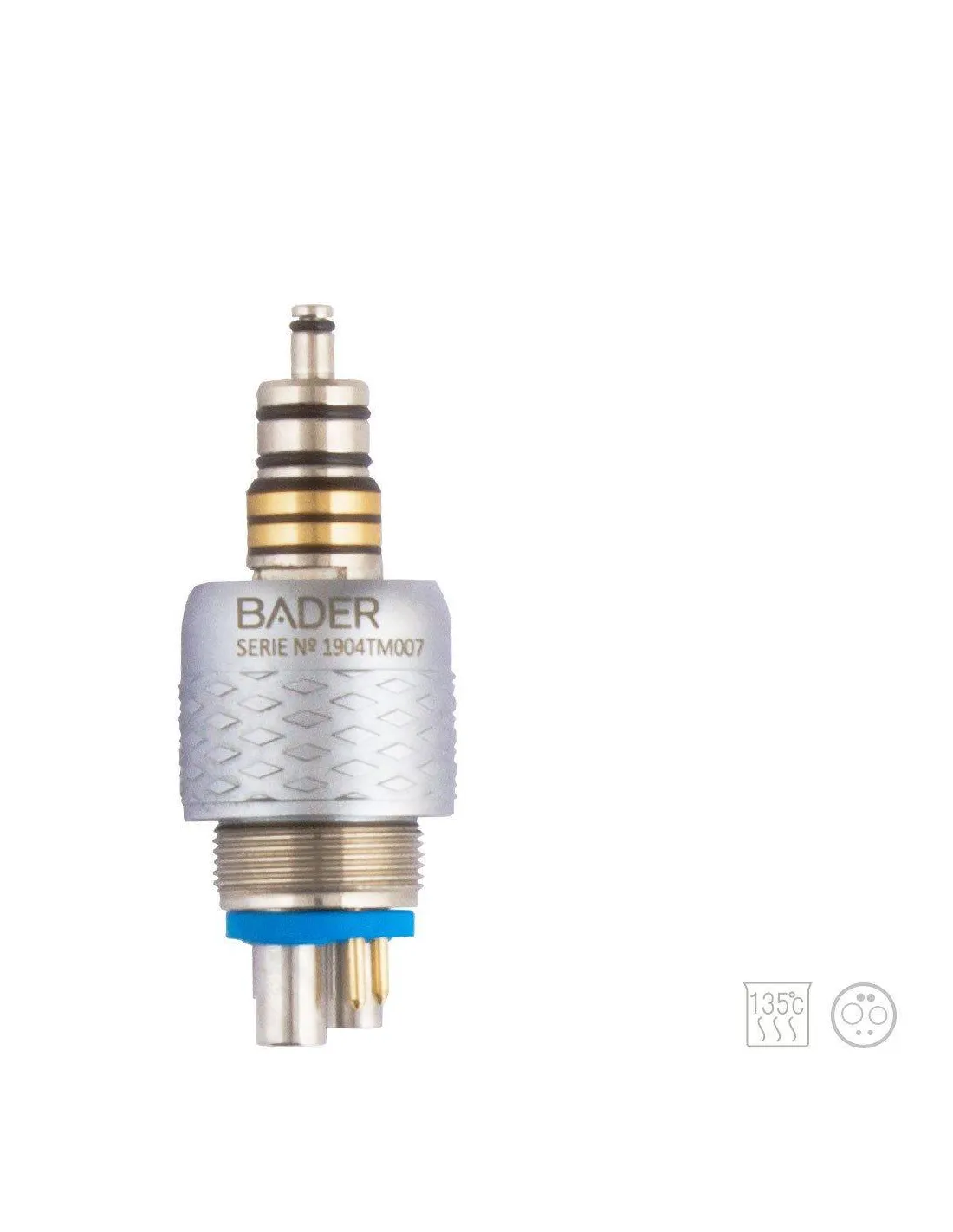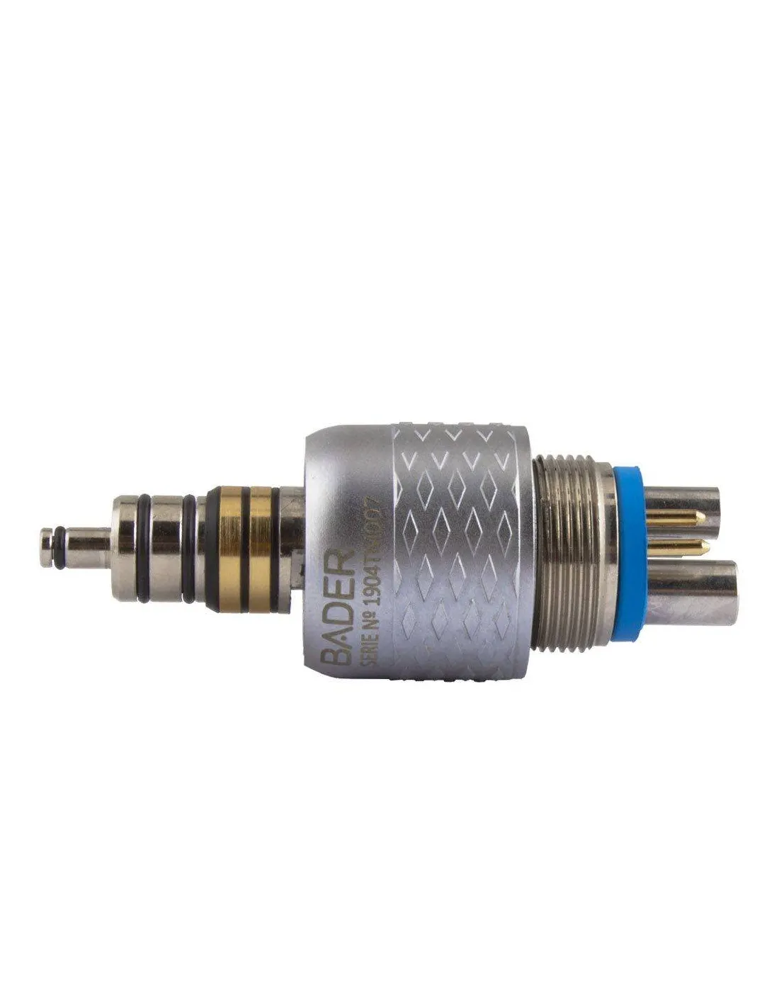 El acoplamiento Bader compatible con W&H, tipo Roto Quick, trabaja con la transmisión de aire, agua, electricidad y luz equipada entre la manguera de conexión de la unidad dental y los accionamientos de aire.