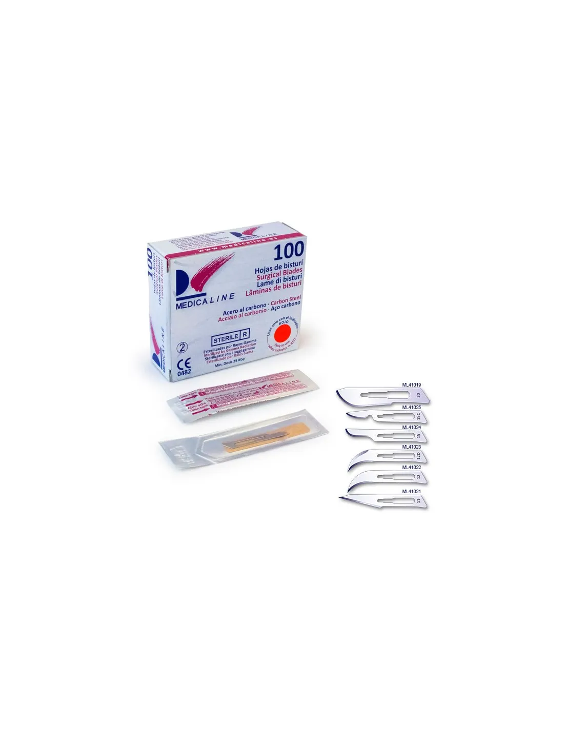 Hojas de bisturí Medicaline by Carl Martin están fabricadas en acero al carbono quirúrgico y esterilizadas mediante el proceso de rayos gamma.