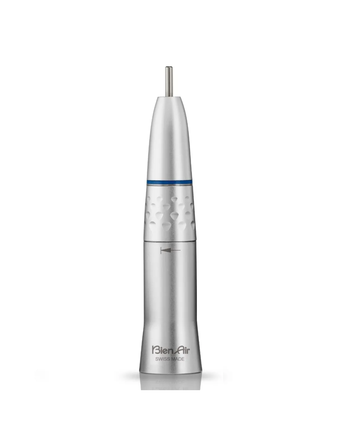 La pieza de mano recta de Bien-Air de transmisión 1:1 (directa), ha sido diseñada para aguantar las tensiones producidas por la presión lateral repetida, mientras continua manteniendo una precisión incomparable.