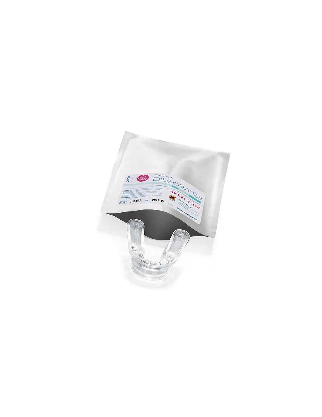 El sistema de blanqueamiento Cavex Bite&White es extremadamente sencillo y rápido: solo abrir la cubeta y colocarla en los dientes.