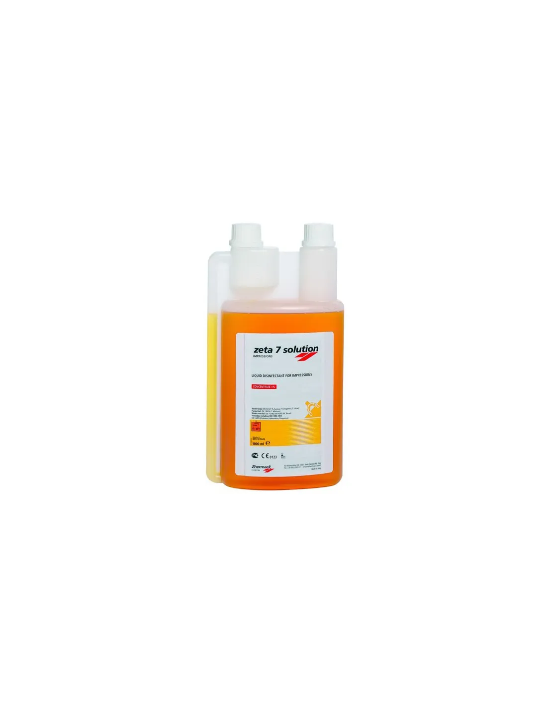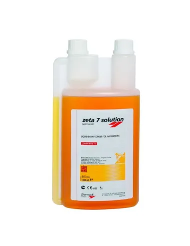 Zeta 7 Solución 1L (STERIGUM) es un desinfectante líquido específico para la desinfección rápida de alto nivel de impresiones en silicona, alginatos, poliéter y polisulfuros.
