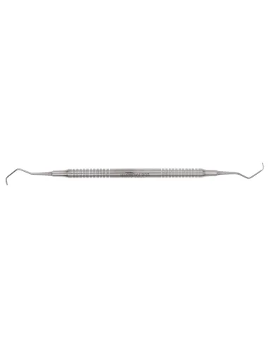 Esta cureta Columbia es de segmento inferior corto, destinada a incisivos, caninos y premolares.