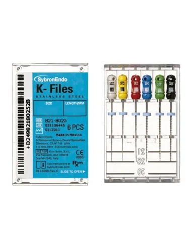 Las limas K de Kerr Hawe Sybronendo para endodoncia son instrumentos manuales que se usan para agrandar los conductos radiculares por acción cortante o por acción abrasiva.