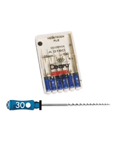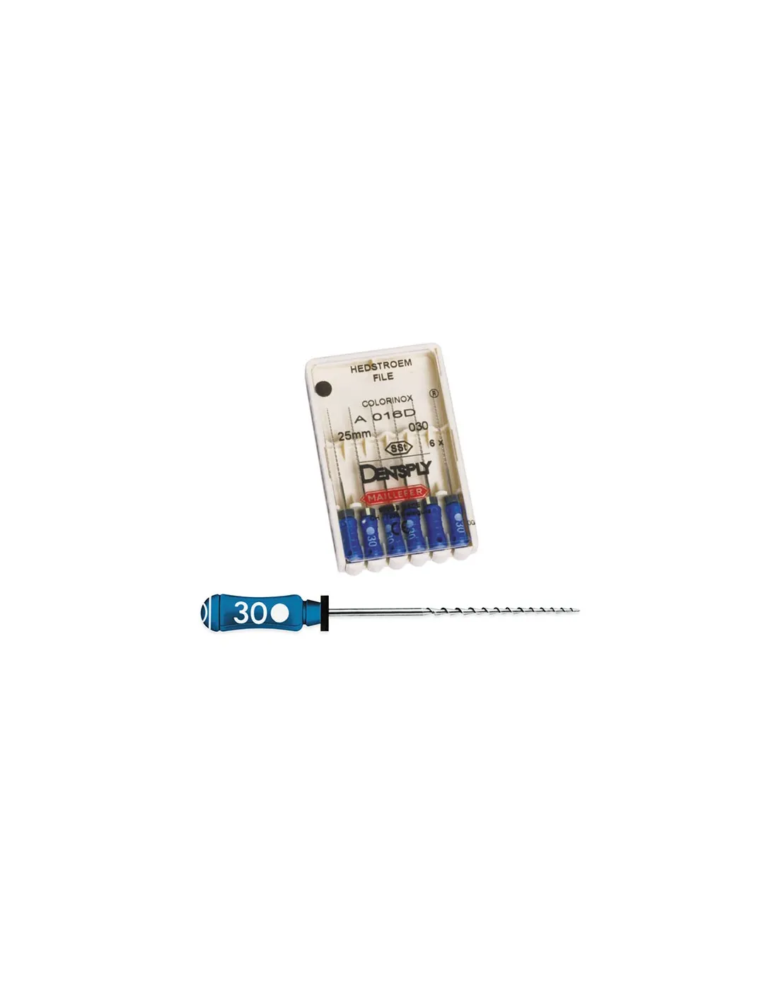 Las limas Hedstroem Colorinox de Maillefer se presentan en cajas de 6 unidades, pudiendo escoger entre 14 tamaños o 3 surtidos.