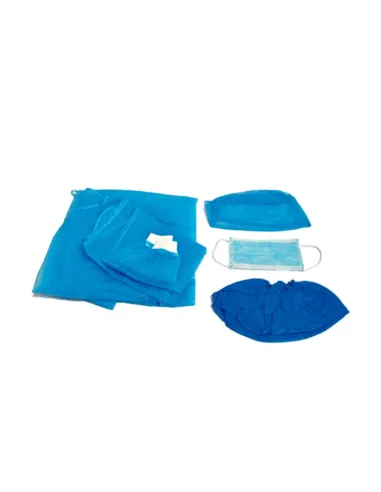 El set estéril para doctor de Alle contiene: 1 bata + 1 gorro doctor + 1 mascarilla + 2 cubrezapatos.