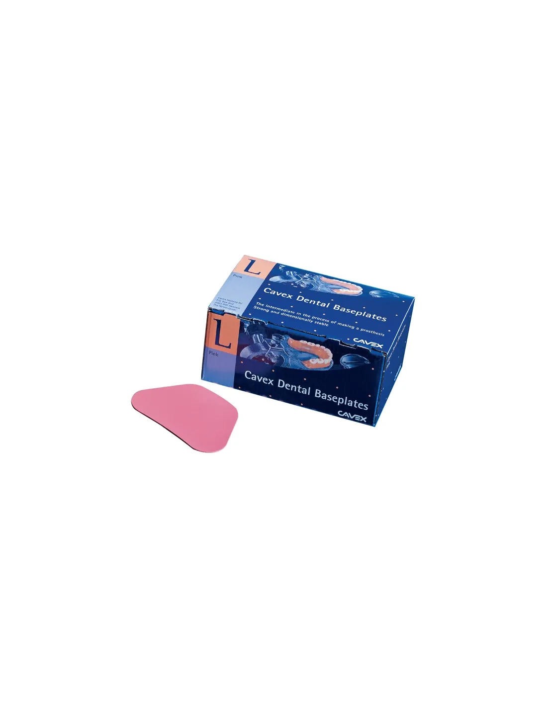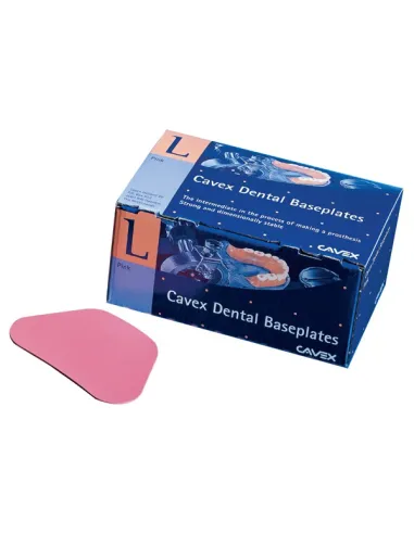 Placas base en color rosa de marca Cavex. El producto intermedio en la fabricación de prótesis.