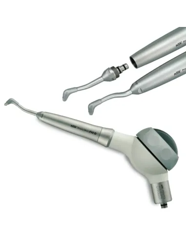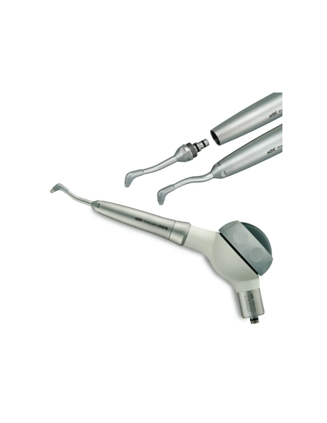 Con mango ergonómico es cómodo de sujetar y ofrece una manipulación flexible del aeropulidor. Su exclusiva doble boquilla de NSK garantiza la máxima potencia de descarga de polvo.