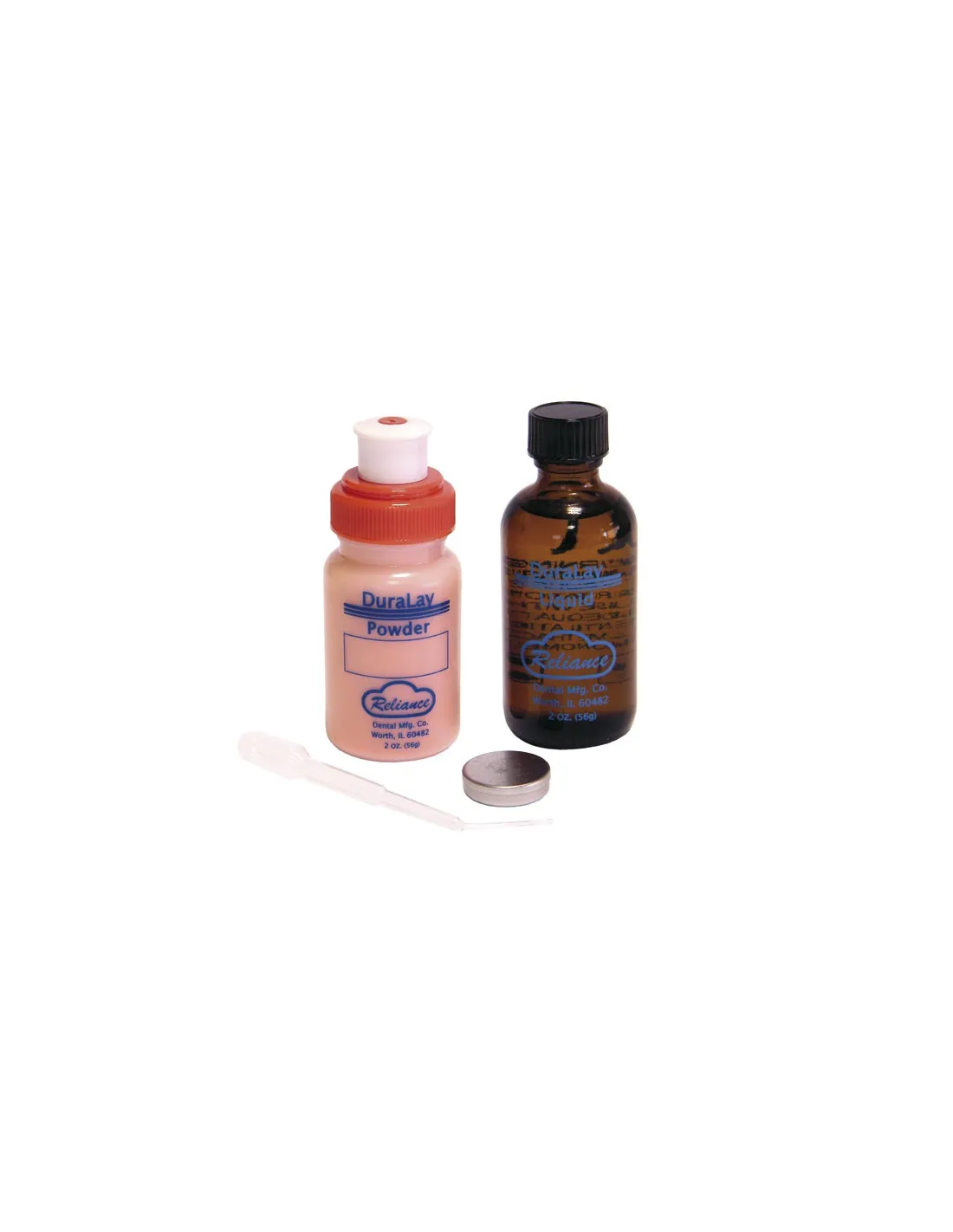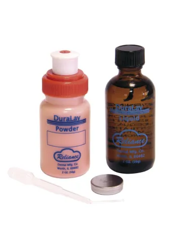 El estuche de Duralay de Reliance contiene: 56gr polvo color rojo + 56ml. líquido.