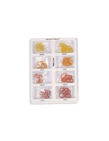 Estuche surtido de introducción Soflex Pop-on, compuesto por 240 discos extrafinos de plástico:3 unidades x 4 gramos en 2 diámetros más un mandril Pop-on.