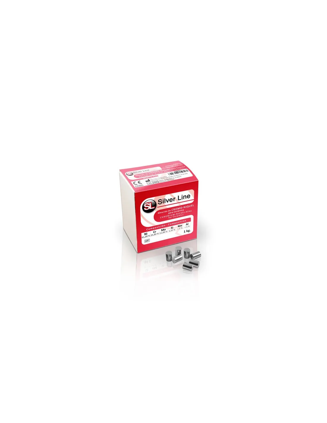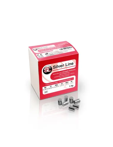 Aleación implantable de cromo y niquel de la marca Silver Line tiene un intervalo de fusión de 1.260 ºC- 1.350 ºC.