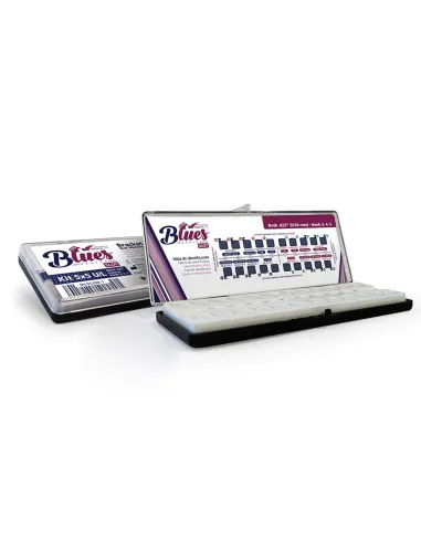 Los brackets Blues cerámicos tienen una identificación permanente y colores añadidos. Hook en caninos y premolares disto-gingival. Sus aletas son generosas para un facil ligado, una base troquelada para una perfecta adhesión y un óptimo descementado.