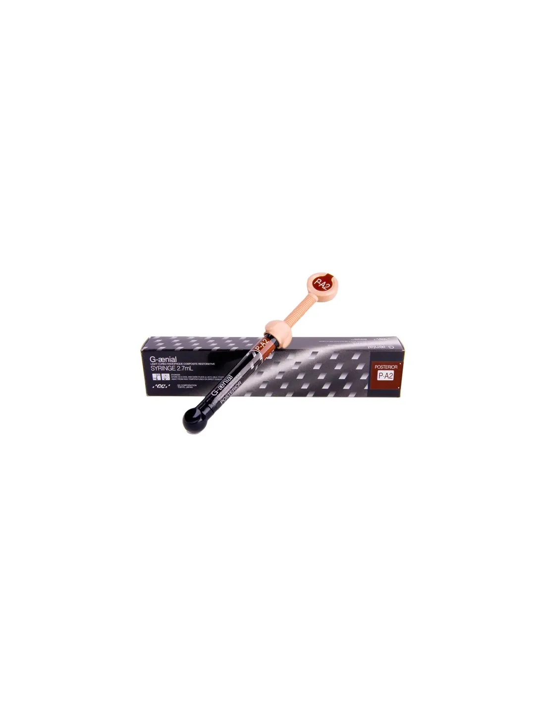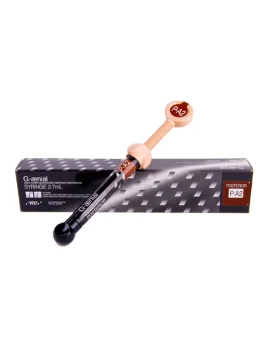 El envase contiene 1 jeringa de 5'5 gr de composite G-aenial Posterior. Disponible en 6 colores.