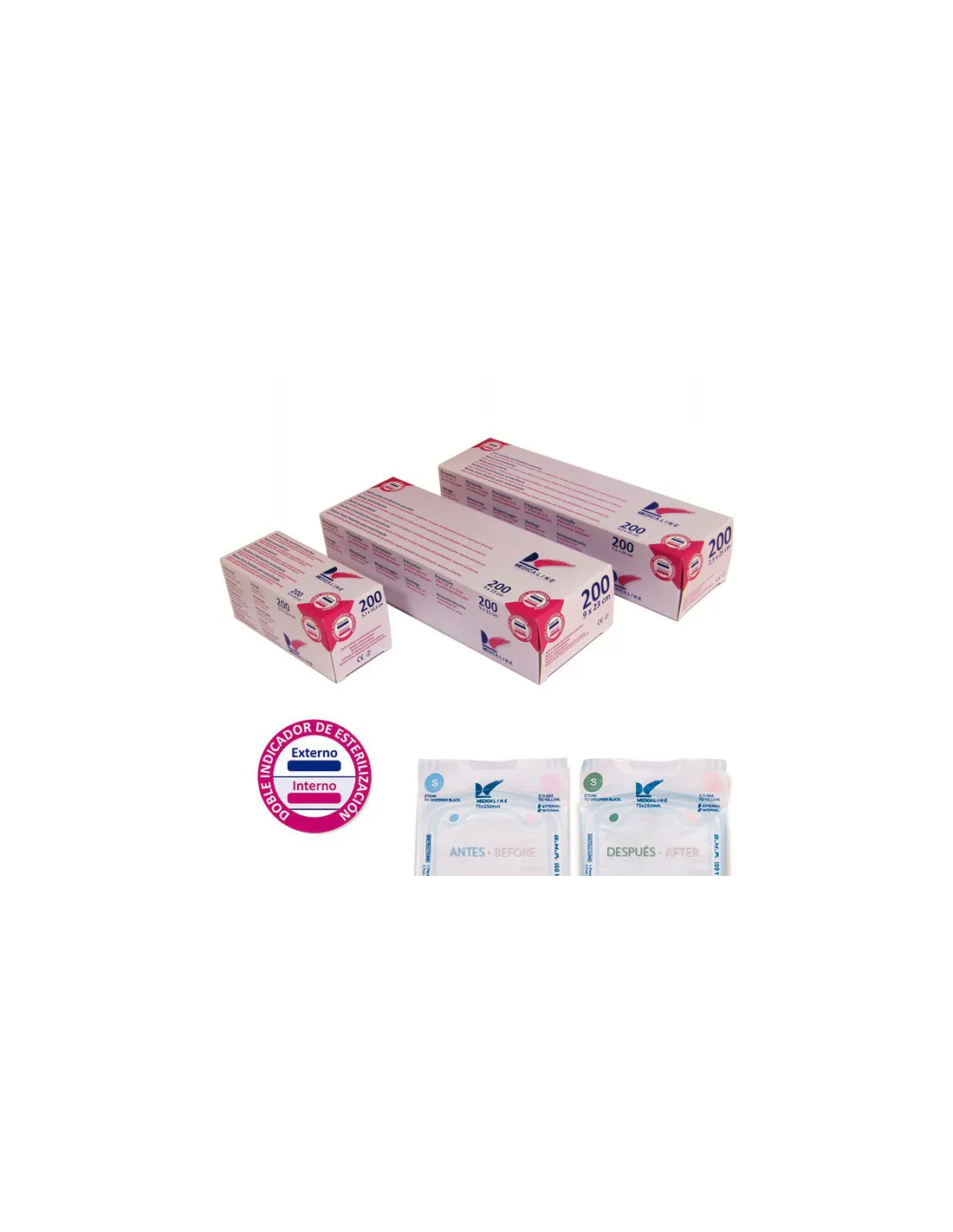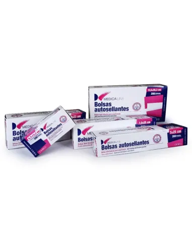 Bolsas autosellables Medicaline de gran resistencia para esterilización en autoclave, con una cara de papel y otra de plástico para la visualización del material, además posee testigo de verificación.