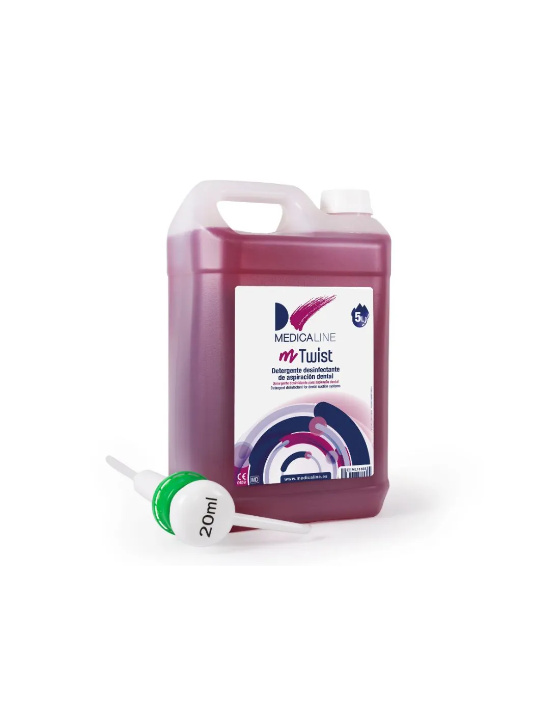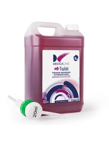 Desinfectante mTwist Medicaline para la aspiración de los equipos dentales con olor agradable. Para limpieza de sistemas dentales de todo tipo y encimeras de sillones dentales.