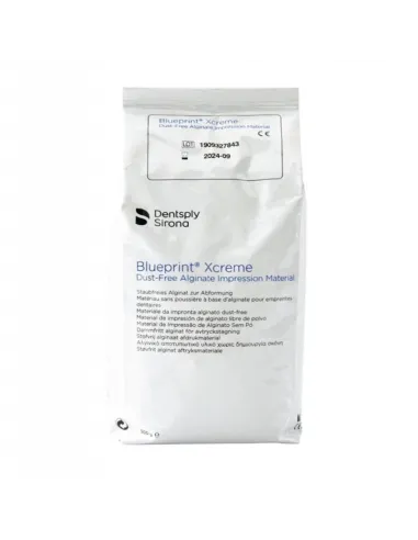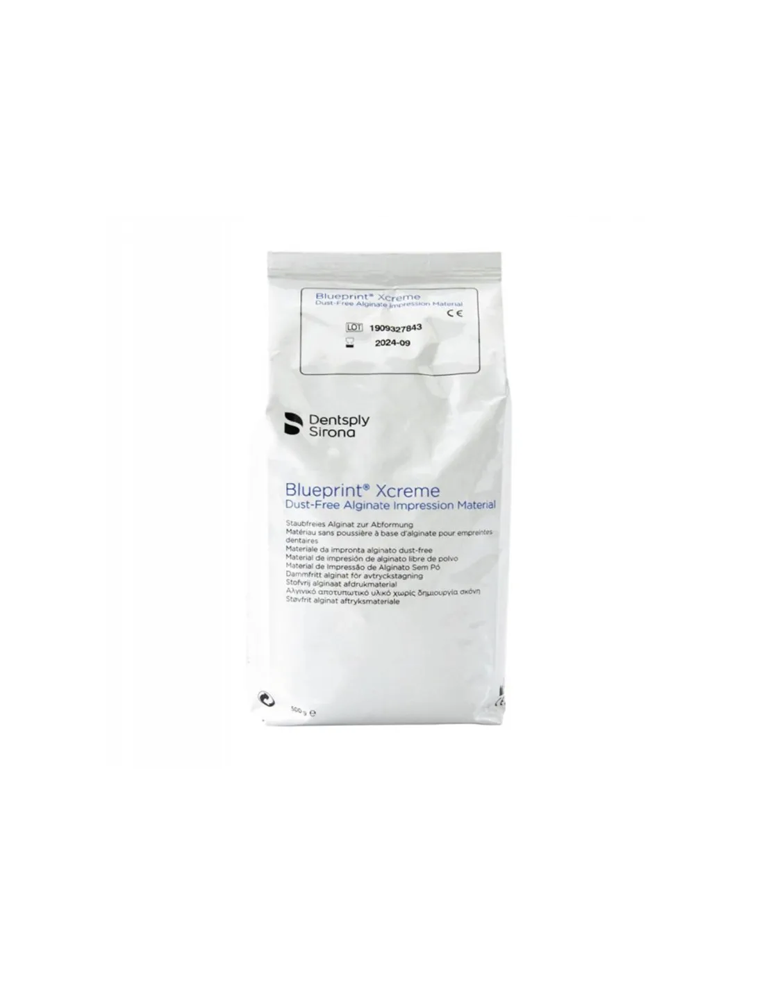 El envase contiene 500 gr de alginato Blueprint Xcreme de Denstply.