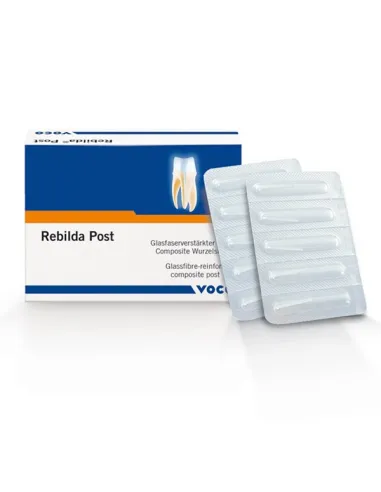 Rebilda Post de Voco es un poste radicular de composite reforzado con fibra de vidrio, un complemento excelente al material de reconstrucción de muñones y fijación Rebilda DC. Está indicado en casos de sustancia dentaria insuficiente, soporte en la reconstrucción del muñón para el apoyo y posterior fijación de restauraciones coronarias.