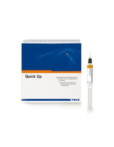 El envase de Quick Up de Voco contiene 1 jeringa QM de 7'5gr + accesorios.