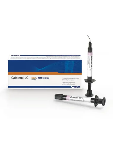 Calcimol LC de Voco es una pasta de hidróxido de calcio fotopolimerizable radiopaca, que se utiliza como protección pulpar indirecta, como protección cuando se realice la técnica de grabado total, y como recubrimiento debajo de cualquier material.