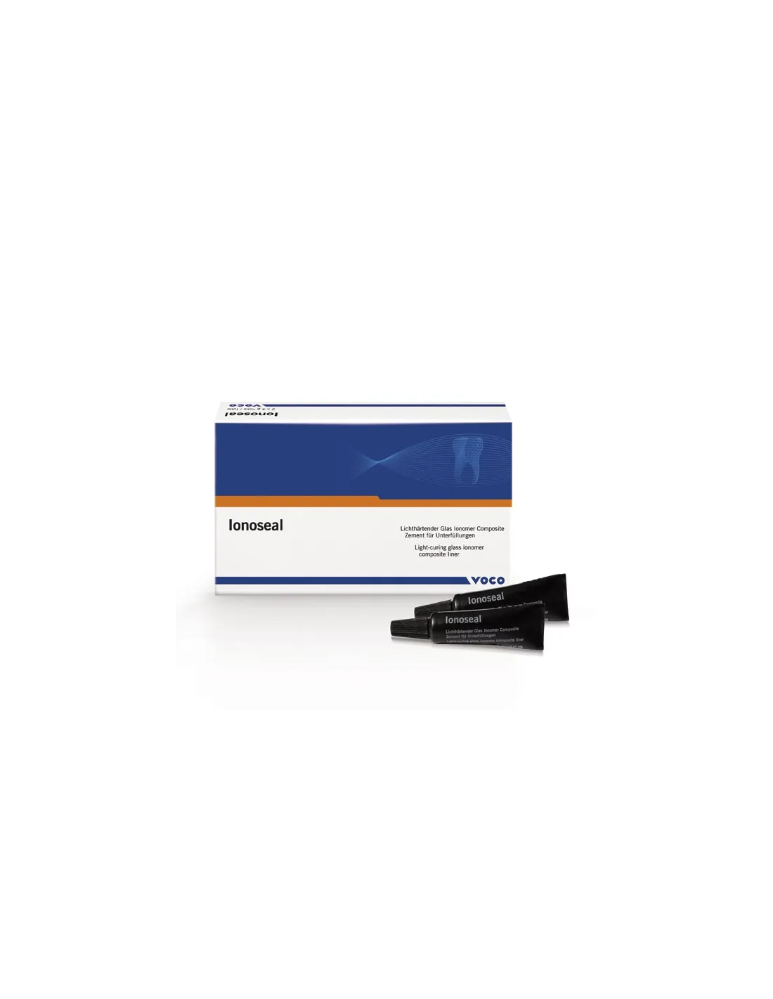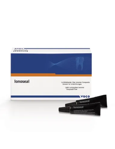 Ionoseal de Voco es un composite de cemento de ionómero de vidrio fotopolimerizable, listo para usar. Se utiliza para sellar fisuras, restaurar pequeñas lesiones y como recubrimiento debajo de todo tipo de material de restauración.