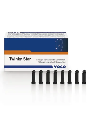 Twinky Star de Voco es un compómero fotopolimerizable coloreado con efecto brillante. Se utiliza para restaurar dientes provisionales o dientes de leche.