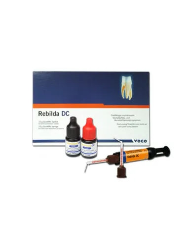 Rebilda DC es un cemento para reconstruir muñones de composite de curado dual fluido. Es fotopolimerizable, logrando una aplicación más rápida. Tiene un curado químico adicional que asegura una polimerización completa.