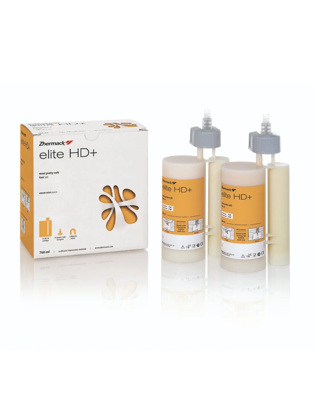 Elite HD+ Maxi Putty Soft Fast es una silicona de adición de altísima viscosidad, presentada en cartuchos 5:1 compatible con las máquinas de mezcla automática, para no desperdiciar material.