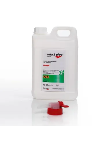 Zeta 3 Ultra de Zhermack es un potente y rápido desinfectante libre de aldehídos, indicado para la limpieza y desinfección de superficies y dispositivos médicos. Con agradable fragancia marina.