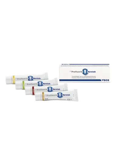 Profluorid de Voco es un barniz dental desensibilizante con fluoruros, utilizado para el tratamiento de dientes hipersensibles y el sellado de túbulos dentinarios. Resulta ideal para el tratamiento de cuellos del diente y remoción de sarro.