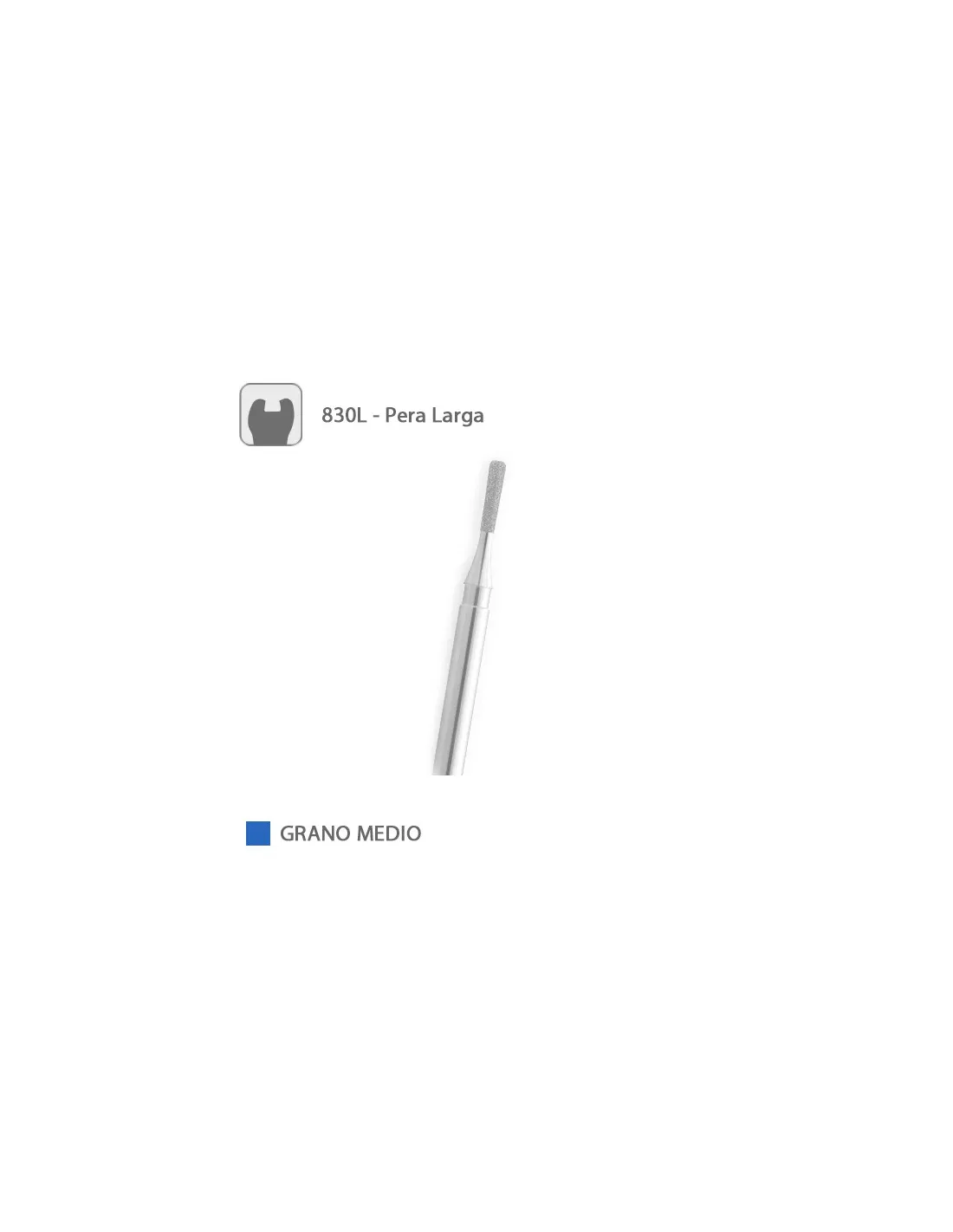 La fresa 830LM de Medicaline es una fresa diamantada FG para turbina, con forma de pera larga.