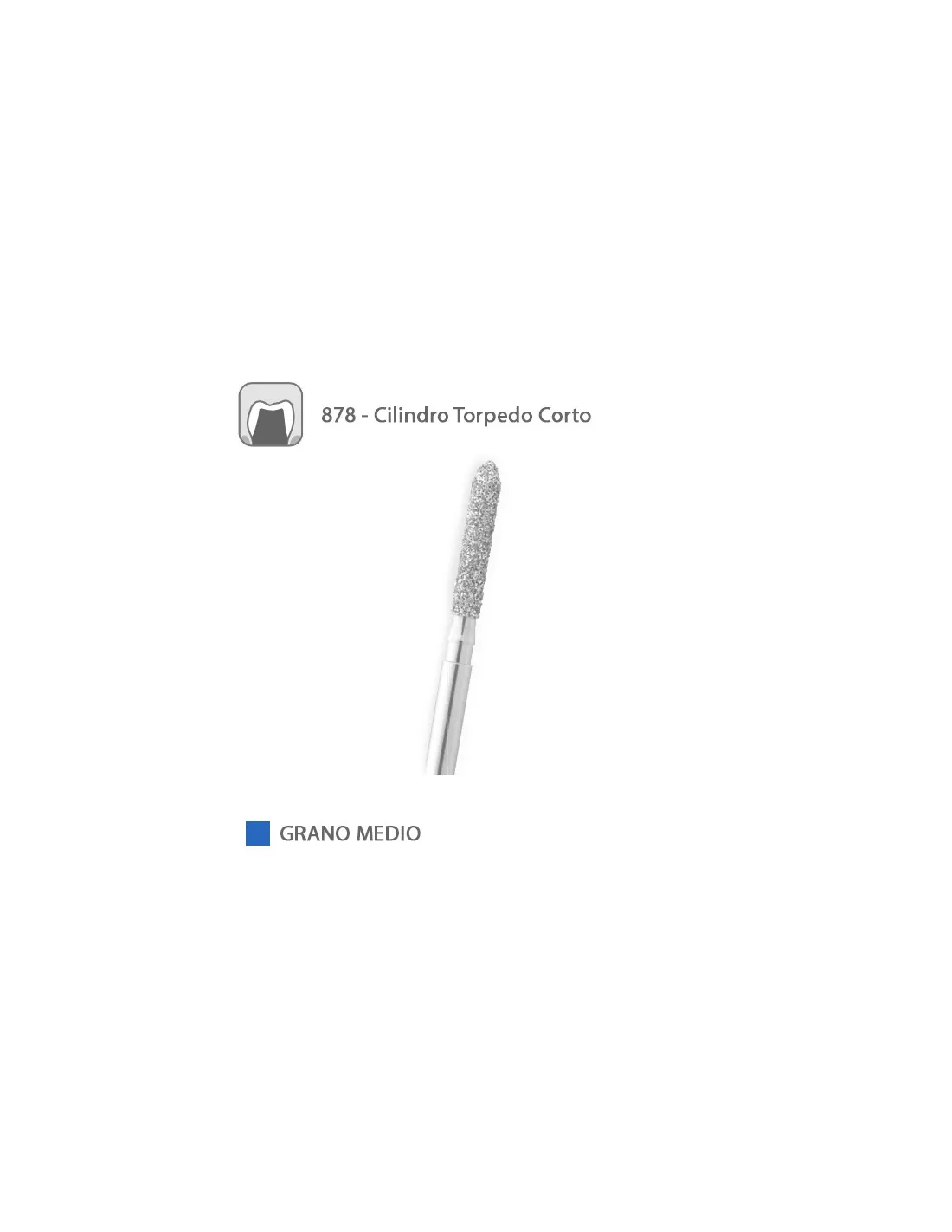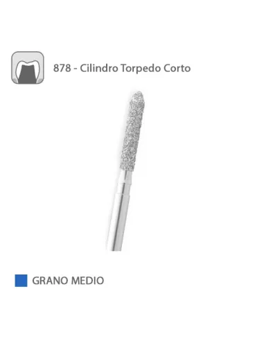 La fresa 878 de Medicaline es una fresa diamantada FG para turbina, con forma de cilindro torpedo.