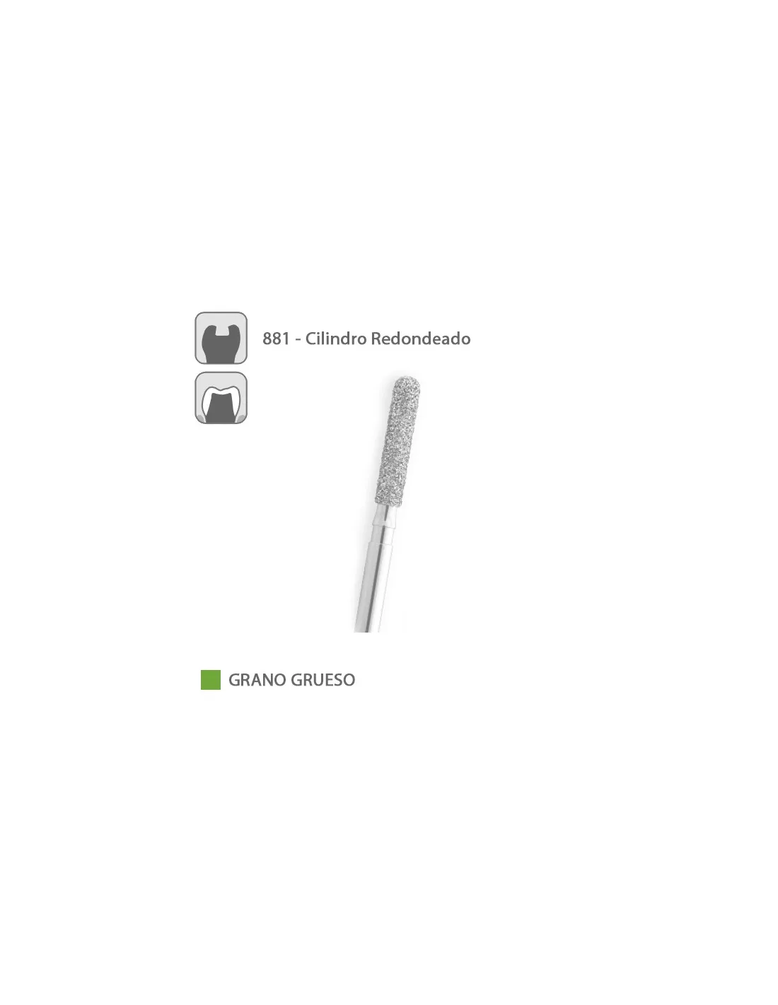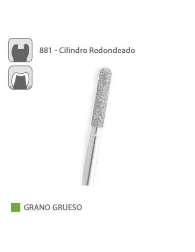 La fresa 881 de Medicaline es una fresa diamantada FG para turbina, con forma de cilindro redondeado.