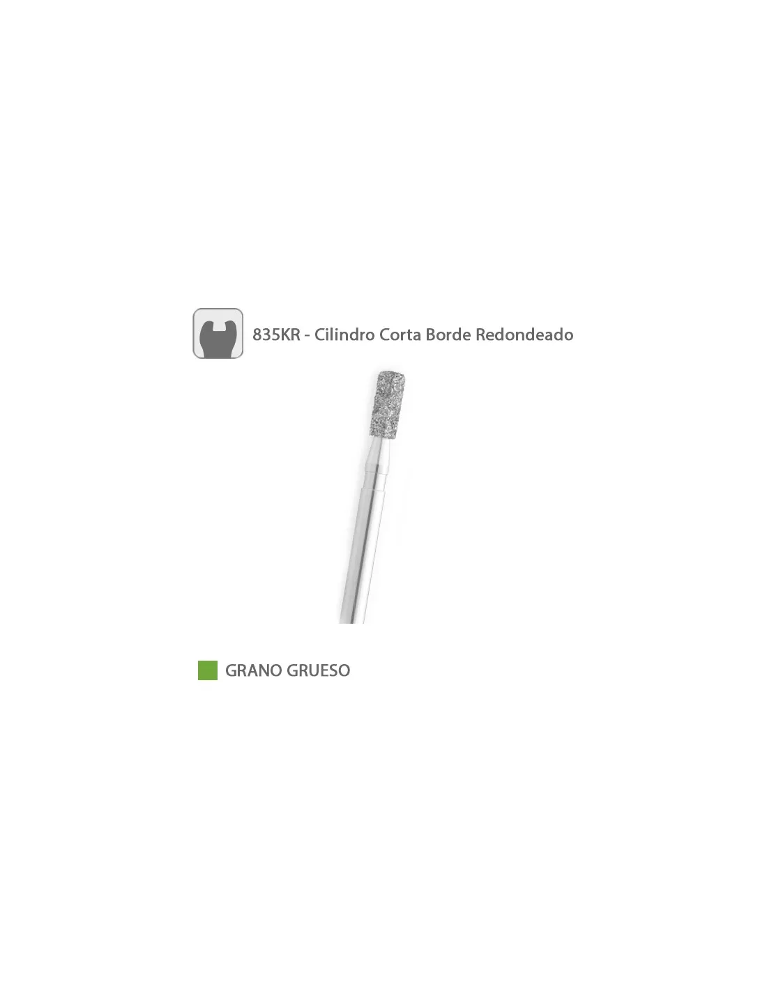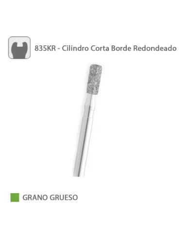 La fresa 835KRC de Medicaline es una fresa diamantada FG para turbina, con forma de cilindro corta-borde redondeado.