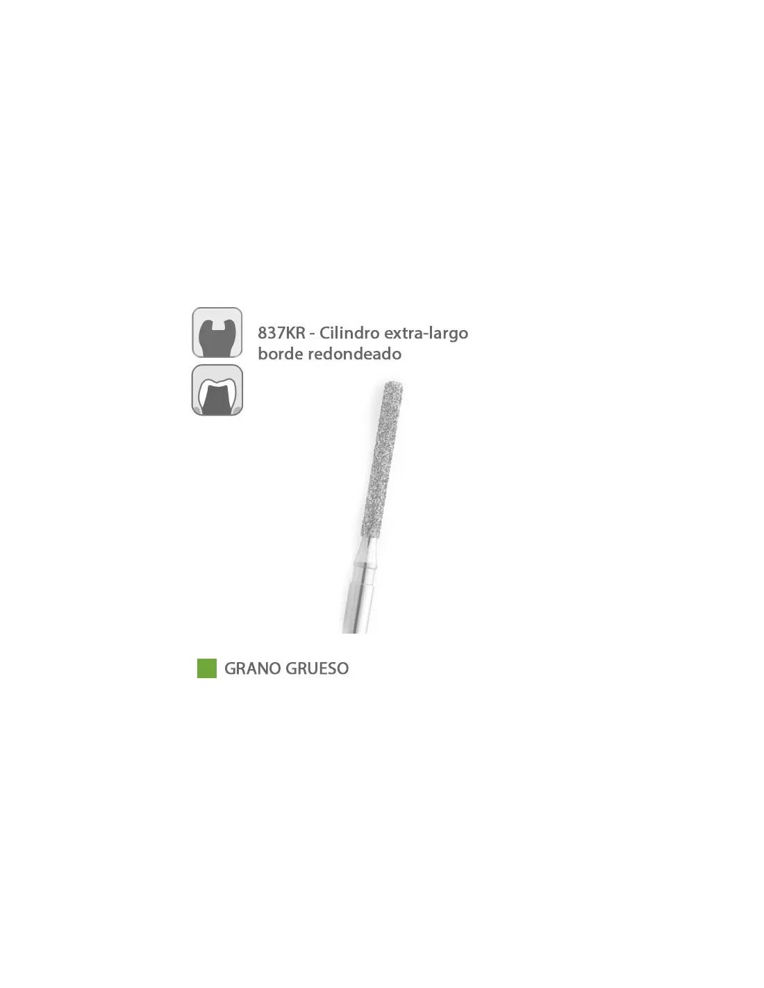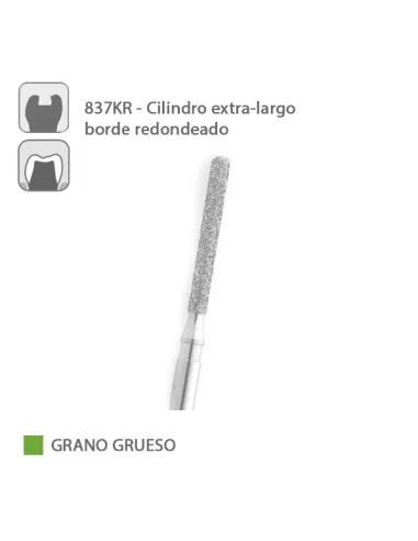 La fresa 837KR de Medicaline es una fresa diamantada FG para turbina, con forma de cilindro XL borde redondeado.
