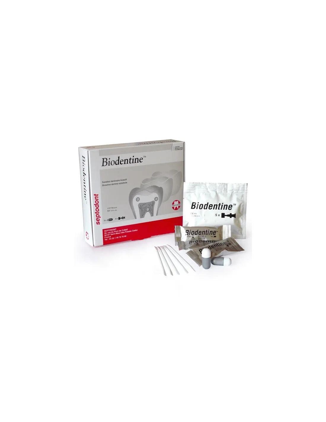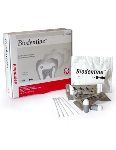 Biodentine de Septodont es un sustituto bioactivo de la dentina que se utiliza para reparación de endodoncia y en procedimientos de restauración en raíces y coronas. Es biocompatible y tiene unas propiedades y comportamiento mecánico similar a la dentina humana.