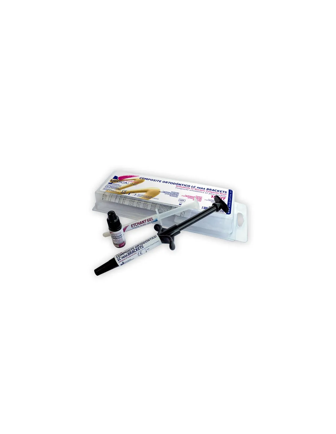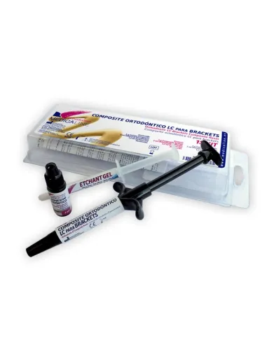 El kit de ML Ortho Cement Brackets contiene composite, adhesivo, Etchant Gel y accesorios.