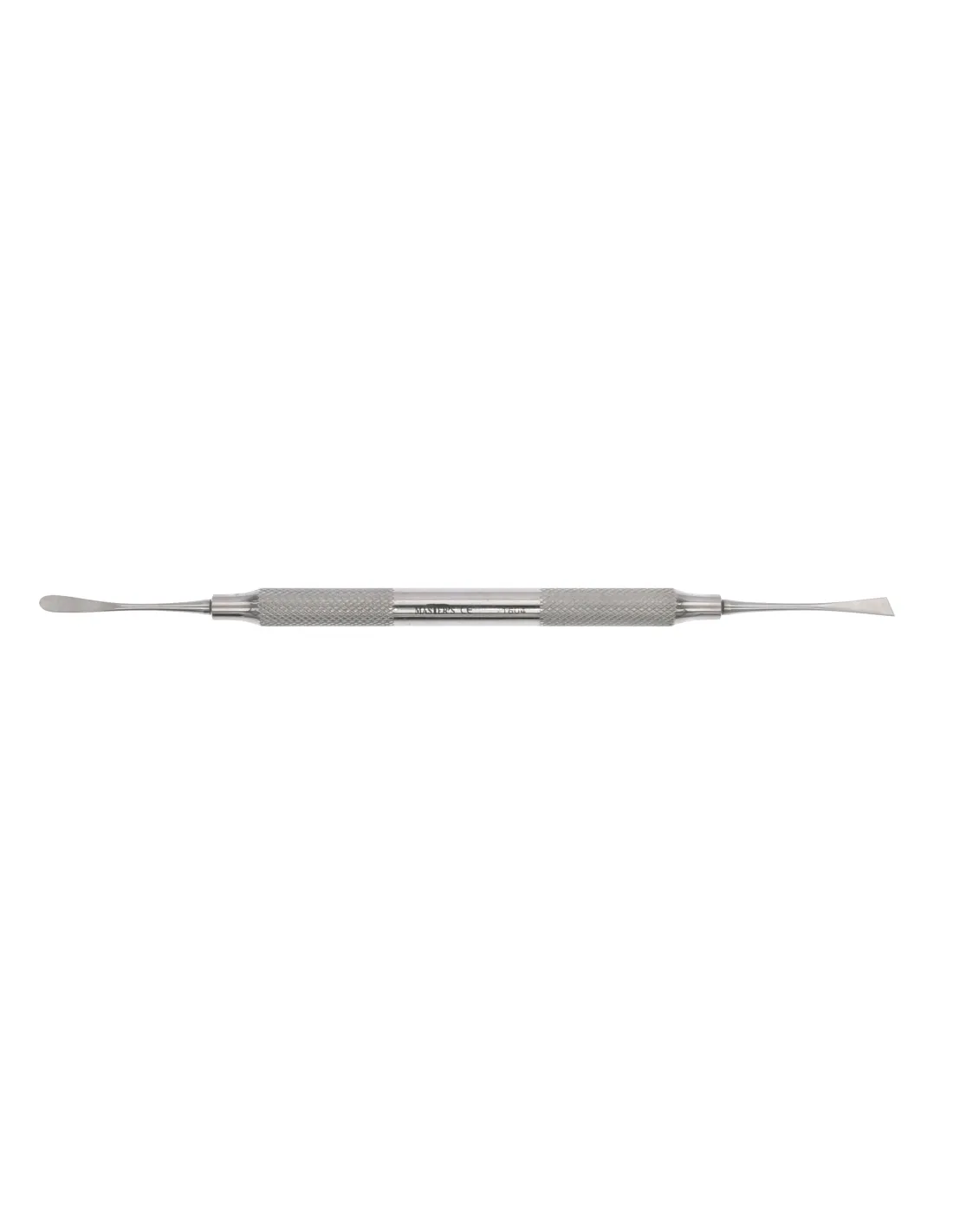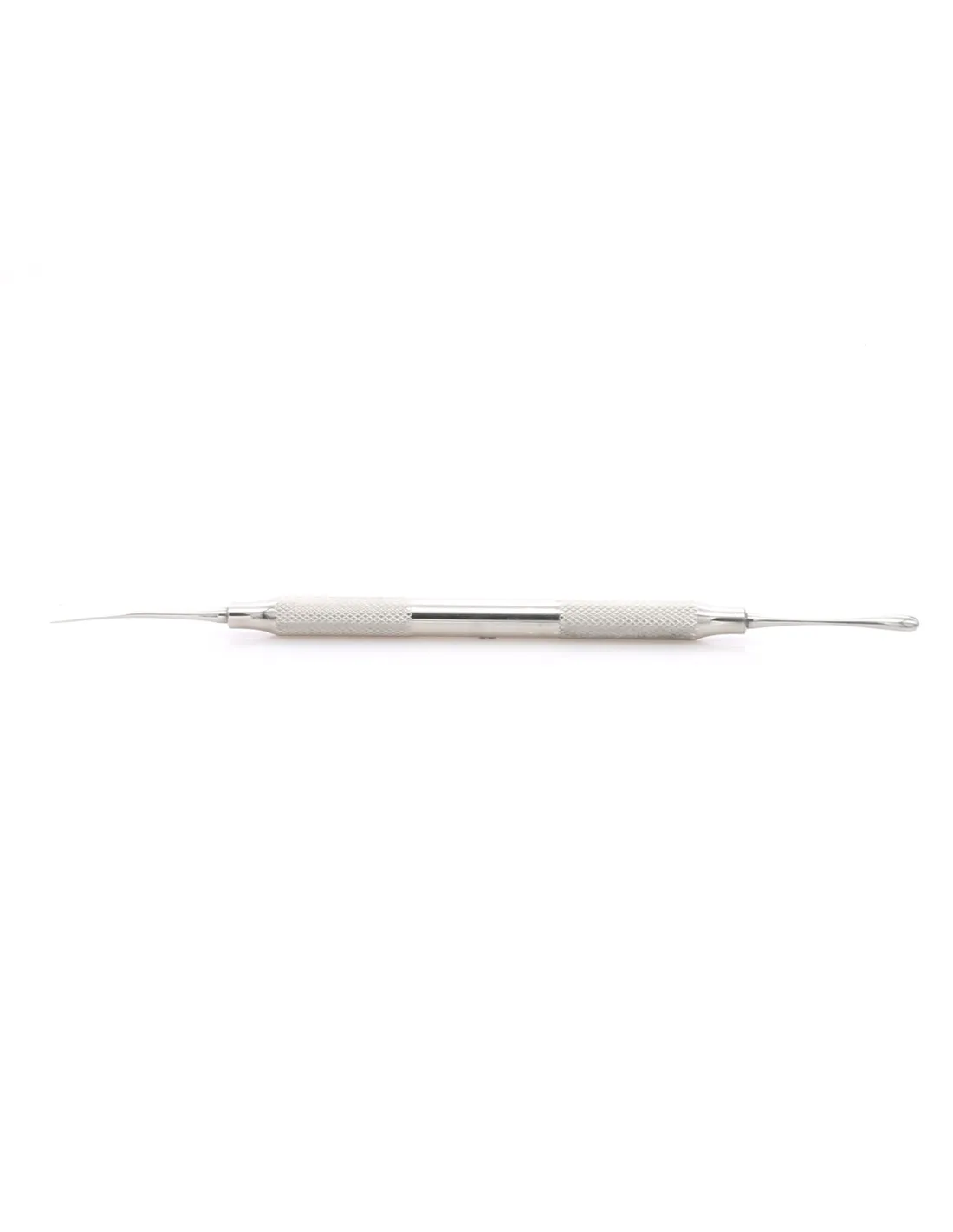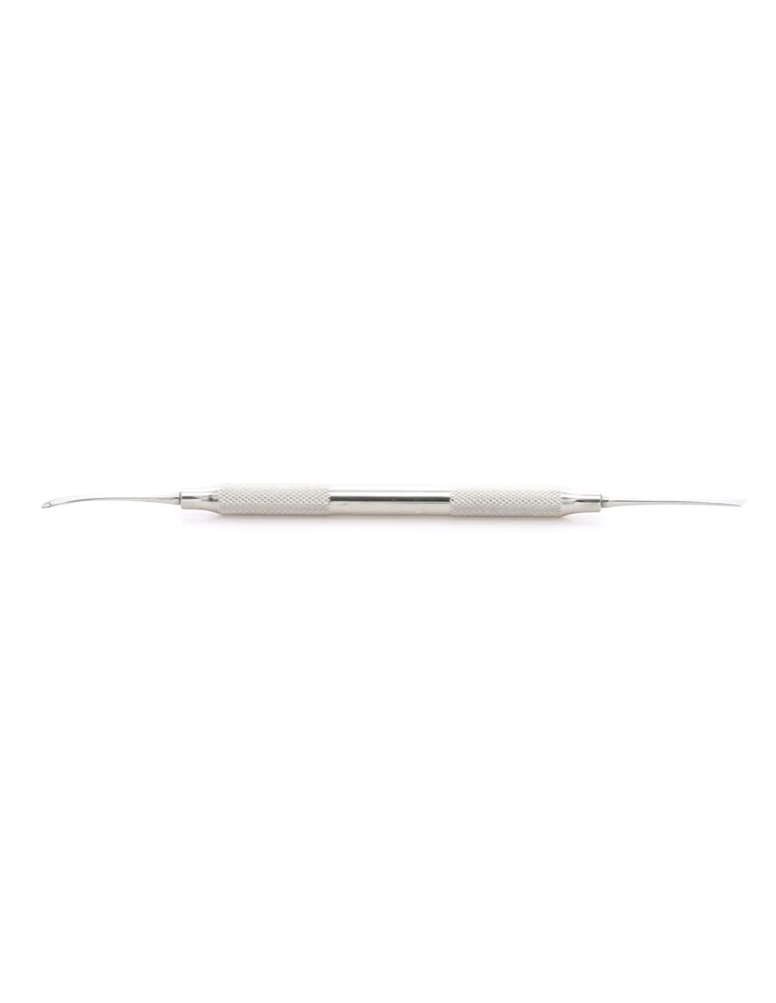Consta de dos partes activas, una es redondeada y ligeramente curvada de 3,5 mm de ancho, y la otra es recta y afilada de 4,3 mm.