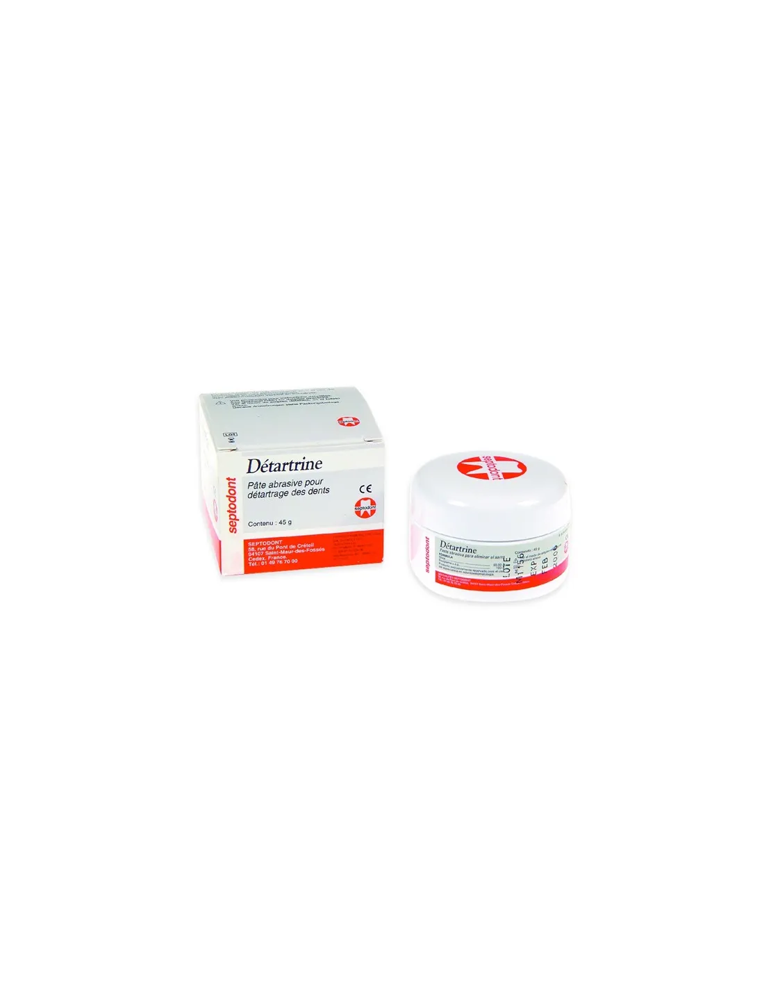 La pasta de profilaxis y raspado Detartrine de Septodont se presenta en envase de 45 gr.