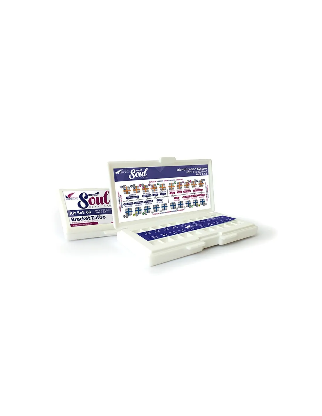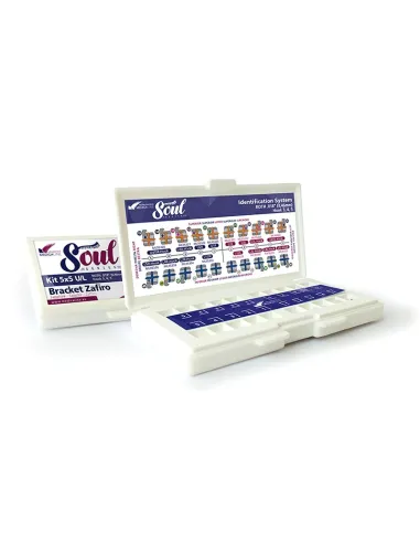 El kit de brackets estéticos de Zafiro Soul contiene 20 unidades. Está disponible en Roth 0.18, Roth 0.22 y MBT 0.22