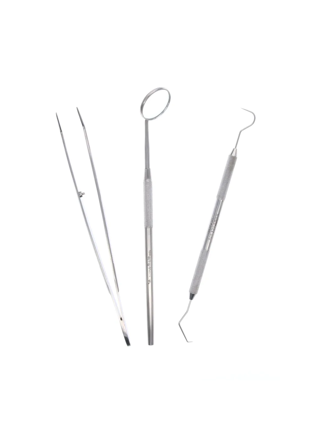 - 3 instrumentos: explorador doble, pinza y mango con espejo Cone Socket (rosca larga y gruesa)